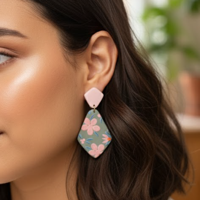 Leves e com uma estética chique e feminina, esses brincos são a escolha perfeita para quem busca um acessório que une as tendências de cores da moda com um toque floral delicado. Ideal para looks casuais e eventos diurnos.