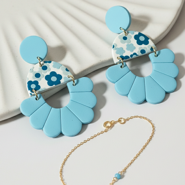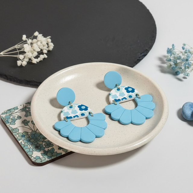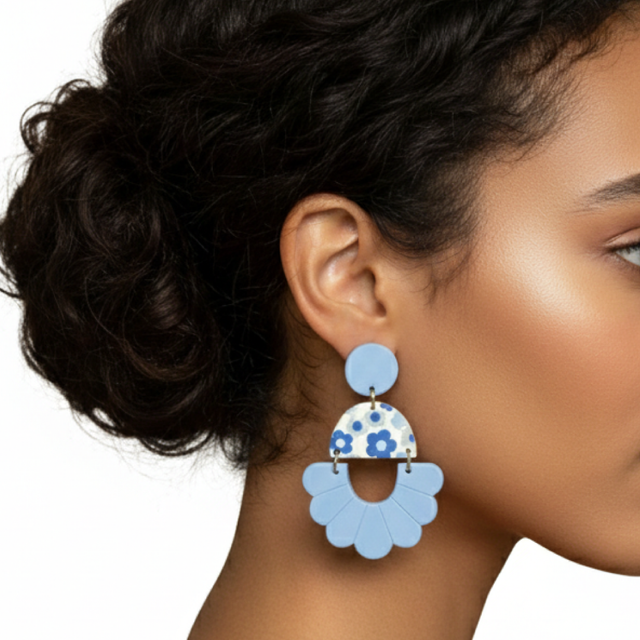 Estampa: Floral (Flores estilizadas em diferentes tons de azul sobre fundo branco)